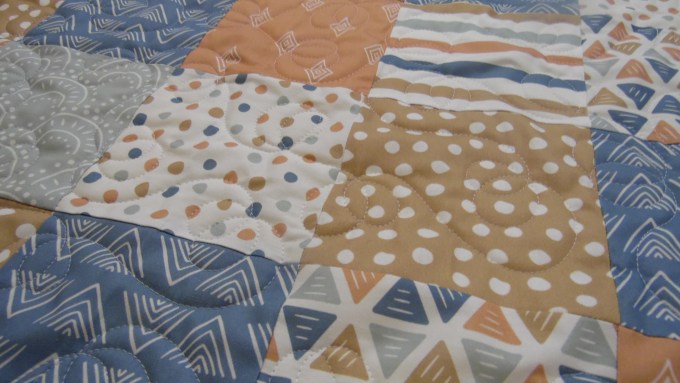 This afternoon I finished long-arm machine quilting a baby quilt that my younger sister pieced. It is a fun mix of blues, golds, and peach fabrics in a variety of patterns. My sister left it… More
