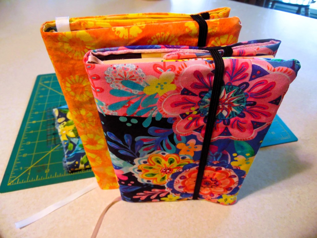 I am happy with the progress I have made on the book covers this week! Tomorrow I would like to cut the fabric, ribbon, and elastic for the third book cover in the morning. Depending on how much time I am able to spend on the project during the morning hours, I will also try to pin everything in place. It took me a little bit of fussing to get the ribbon book mark and the two elastic straps pinned in the right place to accommodate as many book sizes as possible.